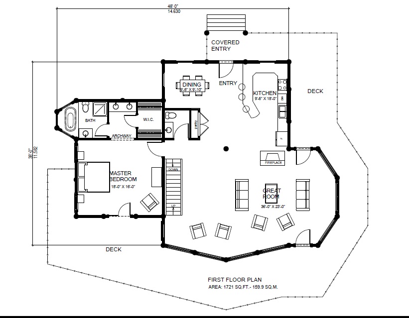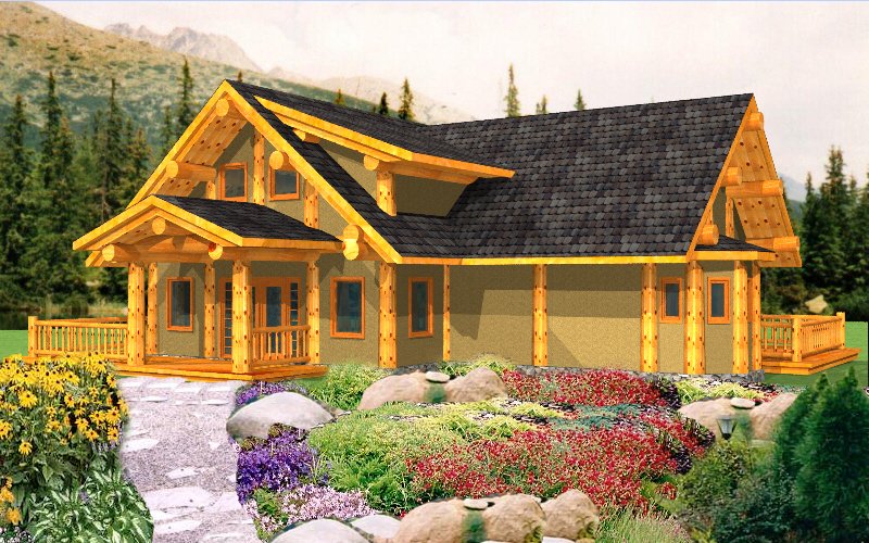Open Concept Log Post & Beam Home Plan