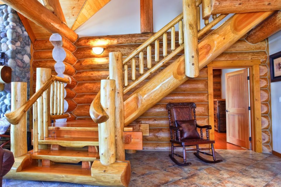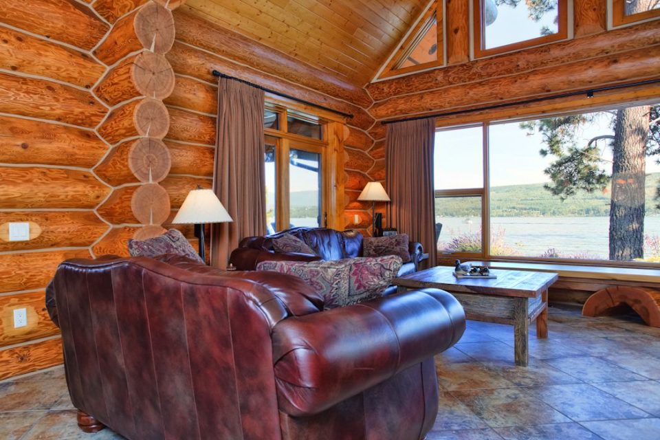Modern Amenities and Traditional Decor in a Lakeside Log Home