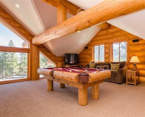 A stack of board games or a karaoke machine can salvage a dismal day if you must abandon your outdoor activites. Or you could incorporate a state of the art home theatre with rustic flair…and a bar into your log home plan! Music and movies even sound better with the astounding natural acoustics in a log home.